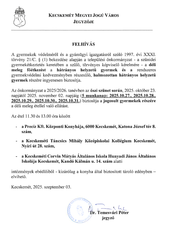 - Felhívás a Kecskeméti Tankerületi Központ fenntartásában működő általános iskolákba történő beíratásra
