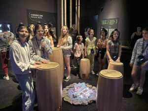 A cirkuszban átélt izgalmak előtt azonban tornászaink a Magyar Zene Házába látogattak el, ahol az intézmény állandó kiállítását tekintették meg. Lányaink egy élményekkel teli történetet járhattak be, egy téralapú fejhallgató segítségével, a zenetörténeti kalandozás az ősember mágikus cselekményeitől, vagyis a zene születésének pillanatától a magyar népzene gyökeréig. Végül a technológia fejlődésének hatásával, a fonográftól a legmodernebb hanghordozókig és az elektromos hangszerekig, a mindent elsöprő populáris zenei stílusokkal is találkozhattak a lányok.