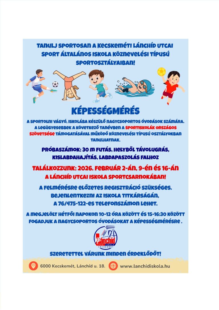 KÉPESSÉGMÉRÉS A LÁNCHÍD UTCAI SPORT ÁLTALÁNOS ISKOLÁBAN