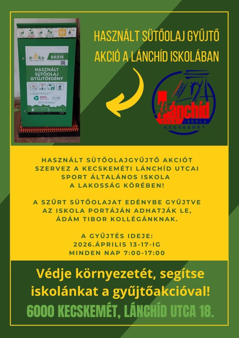 Sikeresen elindult iskolánkban a használt sütőolaj gyűjtésére indított akció!